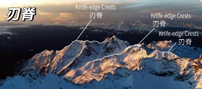 (2)形成过程:相邻冰斗或冰川谷的冰川向源侵蚀和侧蚀,使山脊不断变窄、变陡。