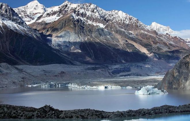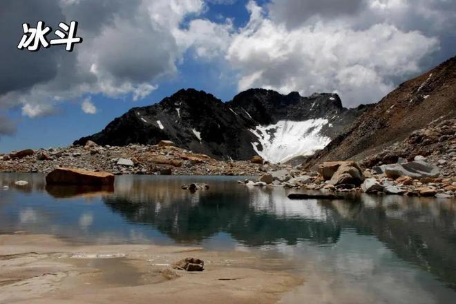 (2)堆积地貌(终碛垄、侧碛垄、冰碛丘陵、鼓丘、冰水沉积)主要分布在冰川下游及消融区。