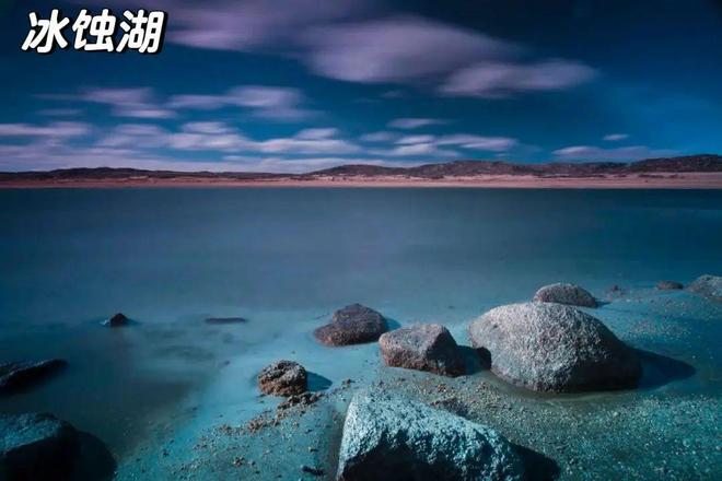 (2)形成过程:埋藏在砂砾中的死冰块融化 → 上部覆盖物塌陷形成洼地 → 常积水成湖(锅穴湖)。