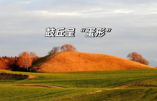 (1)形态:由冰碛物组成的流线型(迎冰面陡、背冰面缓,形如倒扣的汤勺或水滴)丘陵。长轴方向指示冰川运动方向。